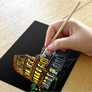 ✔️ 4 Unique Postcard-Sized Scratch Art Designs – Reveal hidden details in each world-famous monument.