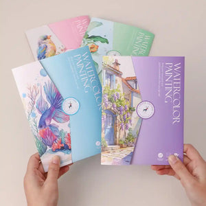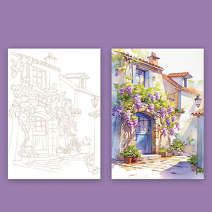 Turn simple sketches into stunning watercolor art — even if you’ve never painted before. The AquaCraft Alley kit guides you through a calming, creative journey where every page brings a charming street to life.