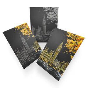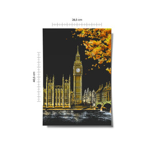 London’s most iconic landmark can now come to life through your creativity! This stunning Scratch Art piece showcases the magnificent Big Ben and the Palace of Westminster in rich detail. Autumn leaves and the shimmering reflections on the River Thames add a magical touch to this classic cityscape.