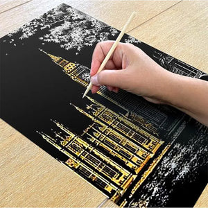 Whether you’re inspired by urban landmarks or looking for mindful creativity, this Scratch Art kit delivers a special experience.