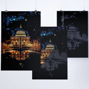 St. Peter’s Basilica – the Vatican’s dome reflected in glowing water