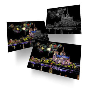 The French Beauty 2-in-1 Scratch Art Set features breathtaking night illustrations of two of France’s most beloved cathedrals. With every stroke of the PixPen, hidden colors and glowing highlights emerge, transforming your artwork into a radiant night masterpiece.