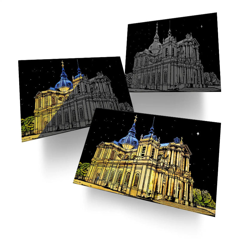 The French Beauty 2-in-1 Scratch Art Set features breathtaking night illustrations of two of Franceâs most beloved cathedrals. With every stroke of the PixPen, hidden colors and glowing highlights emerge, transforming your artwork into a radiant night masterpiece.