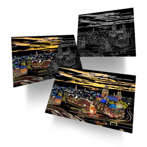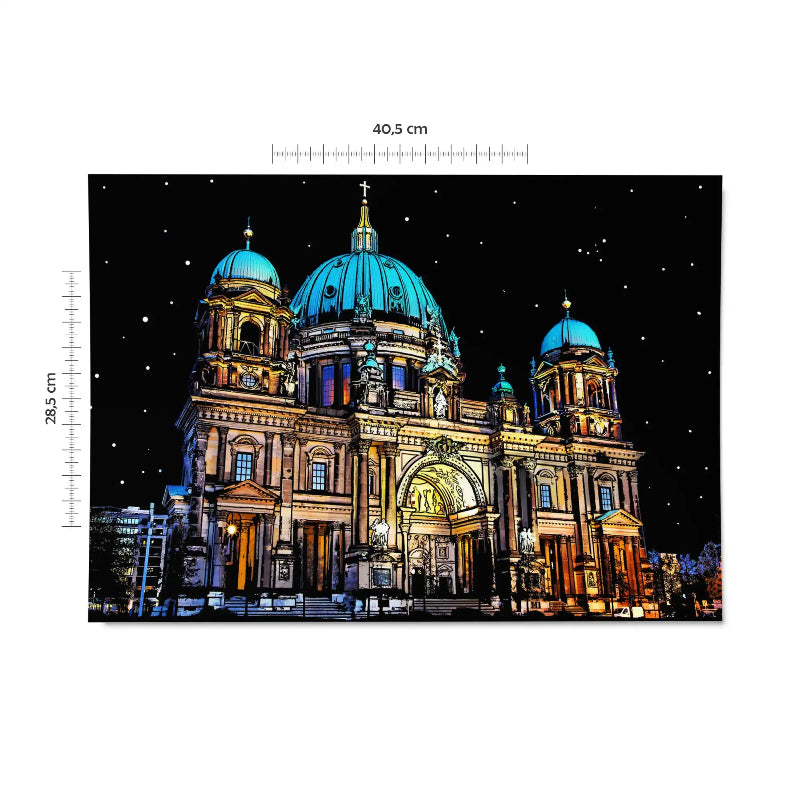 The Scratch Art 2-in-1 Night Edition brings you two breathtaking night scenes: the majestic Berlin Cathedral (Berliner Dom) and the beautifully illuminated Amsterdam cityscape with its famous canals and historic buildings.
