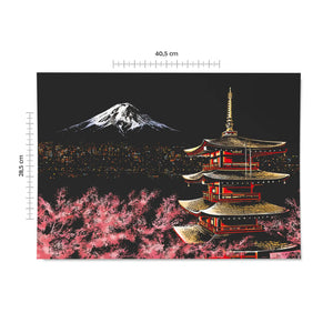 Experience the serene beauty of Japan with this breathtaking scratch art kit, featuring the iconic Chureito Pagoda, the majestic Mount Fuji, and delicate cherry blossoms in full bloom. This piece blends traditional architecture with nature’s grace, capturing the timeless harmony of Japanese culture.