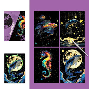 Dive into a magical underwater world where glowing stars, shimmering sea creatures and cosmic colors come alive!