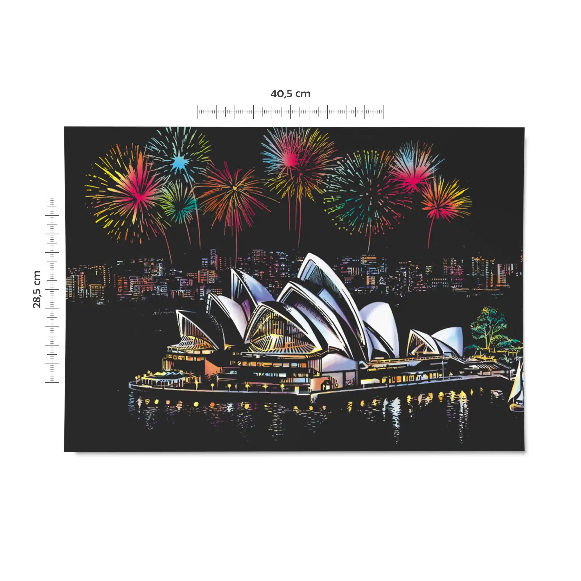 Experience the dazzling lights of the Sydney Opera House—Australia’s most iconic architectural marvel—brought to life under a stunning fireworks display. This scratch art kit captures the magic of Sydney’s harbor at night, offering a truly captivating and creative journey.
