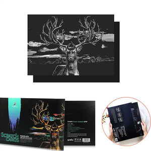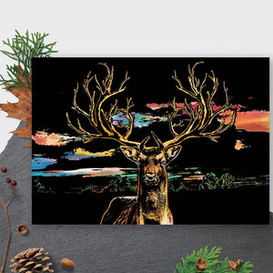 ✔️ 1 detailed scratch art card – Stag at Sunset (size: 40.5 × 28.5 cm)