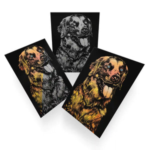 Ünnepeld meg a feltétel nélküli szeretetet és a négylábú barátok hűségét ezzel a szívmelengető KarcMűvészettel! A boldog, játékos kutyaportré megörökíti a barátság, szeretet és társaság igazi lényegét – tökéletes tisztelgés négylábú családtagjaink előtt.
