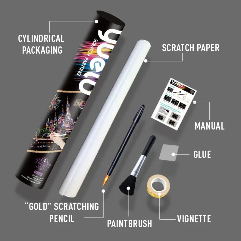 🧰 Teljes KarcMűvészet készlet – tartalmaz GOLD karctollat, ecsetet és ragasztót a precíz és szép befejezéshez